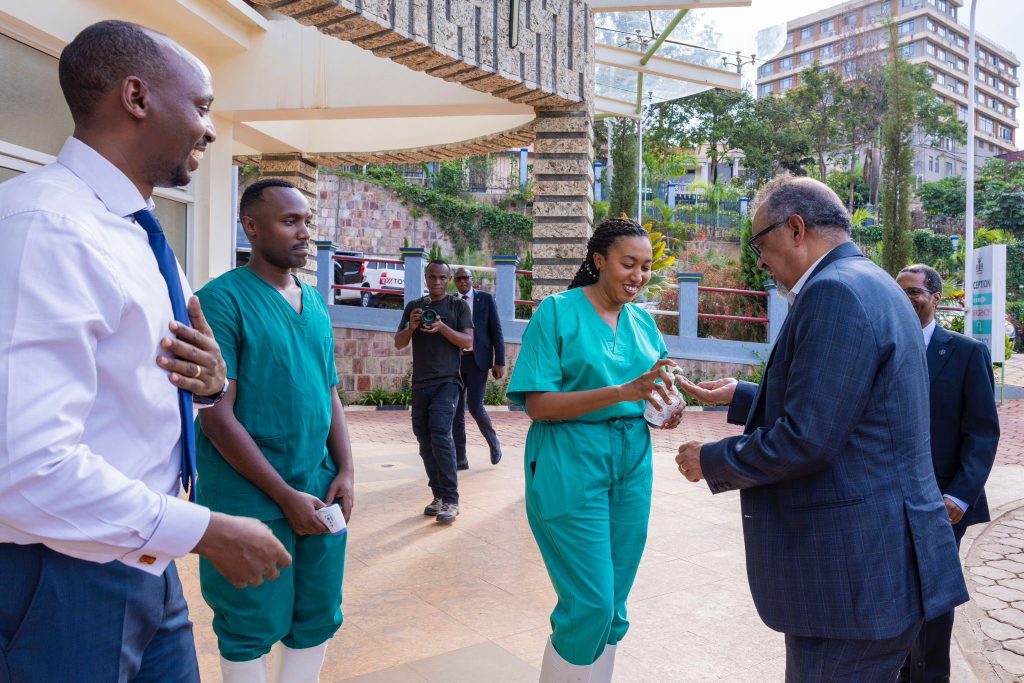 During his recent visit, Dr. Tedros lauded the professionalism of Rwanda’s healthcare workers, particularly their commitment to caring for colleagues infected with the virus.